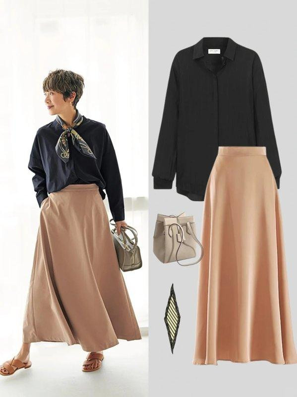 留给丝巾一角就行,折成两指宽塞在领口,V字拉长脖子顺带遮颈纹。